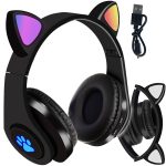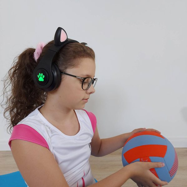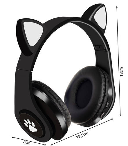 A macskafüles vezeték nélküli fejhallgató minden gyermek számára tökéletes eszköz, a fülek és a fejhallgató oldalának színes világítása nagyon biztonságos kiegészítő lesz , növelve a láthatóságot séta közben vagy az iskolából hazatérve. Ez a modell az idei év kötelező darabja!