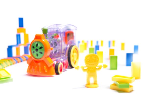 Ezzel a játékkal nem csak a figyelmét tudod lekötni, hanem bizonyos képességei is fejlődni fognak, miközben vidáman játszik. A vonat önmagától teszi le a dominókat, irányváltoztatásra is képes, csak el kell forgatni hozzá a kis kéményét. A dominók segítségével különböző formákat, alakzatokat vagy akár betűket is kirakhattok!