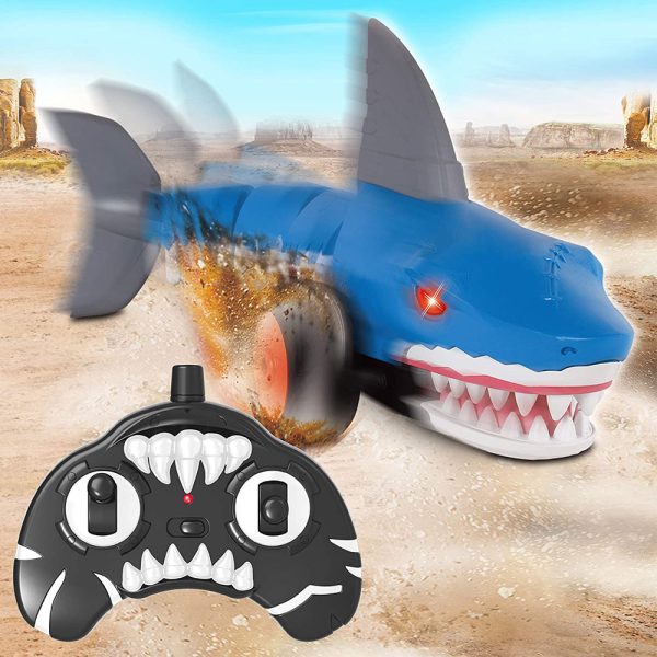 Távirányítós, pörgő-forgó szárazföldi cápa kerekekkel és világító szemekkel (BBJ)