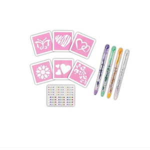 Csillámtetoválás készítő szett csillámporokkal, strasszokkal, ecsettel, sablonnal – tetkó készlet (BBJ)
