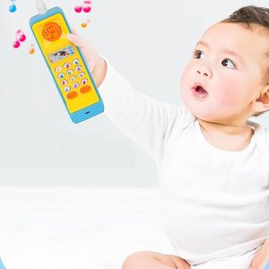 Zenélő, retro mobiltelefon alakú elemes játék babáknak gombokkal és hanghatásokkal (BBJ)