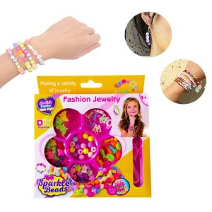 Virág alakú gyöngyékszer készítő szett kislányoknak damillal és változatos formájú, színes gyöngyökkel (BBJ)