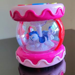 Világító, forgó, zenélő elemes körhinta aranyos lovacskákkal – 10,5 x 11,5 cm – rózsaszín (BBJ)