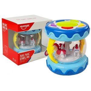 Világító, forgó, zenélő elemes körhinta aranyos lovacskákkal – 10,5 x 11,5 cm – kék (BBJ)