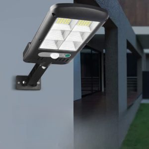 W7101A-4 nagy fényerejű mozgásérzékelő, távirányítós napelemes falilámpa – 210 W (BBD)